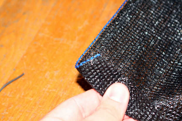 Ahora tome un pedazo de alambre de amarra 550 cable, etc. y sujete la proyección de material a los ganchos de ojo ahora en cada polo. La tapa superior debe estar conectada a la parte superior del material de proyección, y el conector de 2 x 2 deslizamiento debe estar conectado a la parte inferior del material de proyección. Repita para cada polo.