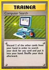 Bueno, imagino que eres en la escuela, el mejor duelista de Pokemon es un movimiento lejos de haber sido derribado por, bien, usted! Pero para ganarle necesitas un agua energía para noquear a su Charizard, y todo lo que tienes en tu mano es una tarjeta al azar con un ordenador en él. Bien, esa tarjeta es mejor conocido como búsqueda de la computadora, que te permite buscar tu mazo de cartas para cualquier tarjeta y poner en tus manos. Esta tarjeta es probablemente una de las mejores cartas de partidario por ahí, y sugiero conseguir una tarjeta con la misma capacidad para su cubierta. Como ya hemos visto, partidario tarjetas son socorristas, y pueden cambiar rápidamente el aspecto de la batalla. Sugiero tener buena, calidad tarjetas de apoyo para salir de situaciones pegajosas.
