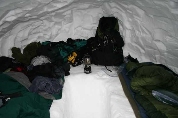 Construir un banco lo suficientemente amplio como para sentar cómodamente a ambos lados y a través de la espalda. Los lados será la cama y la parte posterior se ser su almacenamiento de información / área de la tabla. La cueva debe ser lo suficientemente profundo para que los bancos de lado son tiempo suficiente para que usted pueda dormir sobre su espalda más de 18" para su equipo. Me gusta excavar lo suficientemente profundo para que haya espacio suficiente para todo esto más el espesor de la pared frontal y un pequeño Banco fuera de la cueva. Mi total del Banco fue de cerca de 12 pies. Otro estante pequeño nicho puede construir aproximadamente 12" por encima de esta plataforma. Aquí usted puede colocar una vela pequeña. Usted se sorprenderá cuánto una vela puede elevar la temperatura en un recinto bien aislado como una cueva. NO traiga en un calentador. No quiero derretir tu cueva desde el interior.