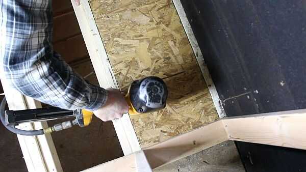 Luego coloque su OSB o madera contrachapada sobre las clavadoras.