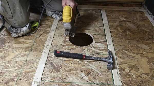 Mida desde el centro de la tubería y corte un orificio de 6 1/2".