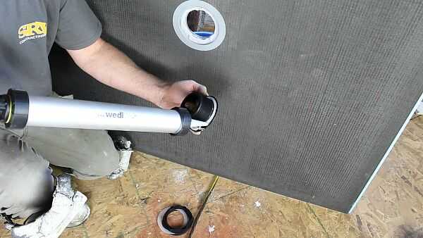 Añadir el sellador a la brida del desagüe Wedi, demasiado.