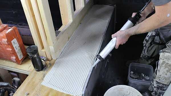 También usó una tira de 1/2 pulgadas de Wedi sellador de juntas donde el panel horizontal de Wedi se reunió con otro pedazo de Wedi.