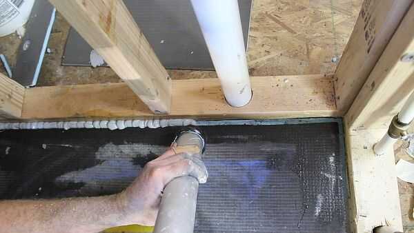 Algunos del sellante con Wedi vienen hacia fuera de la ranura.