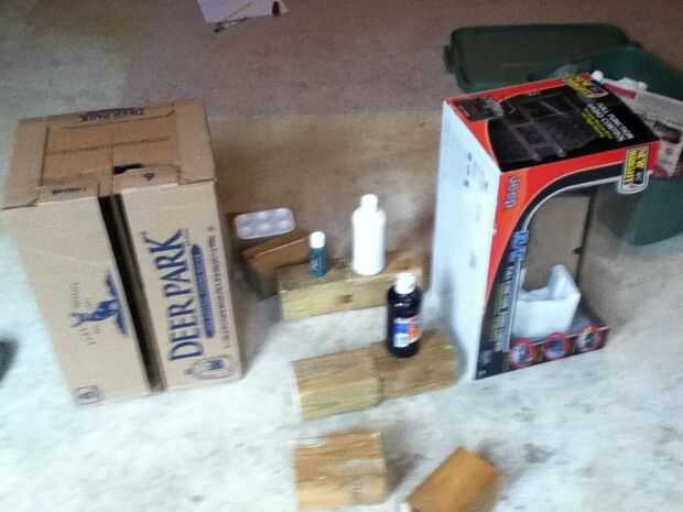 Esto es lo que es necesario para el proyecto modelo. • Dos cajas de cartón • 8 pequeños bloques de madera • pintura negra pintura verde para pintar de blanco • 1 regla y... • 1 marcador de Sharpie negro