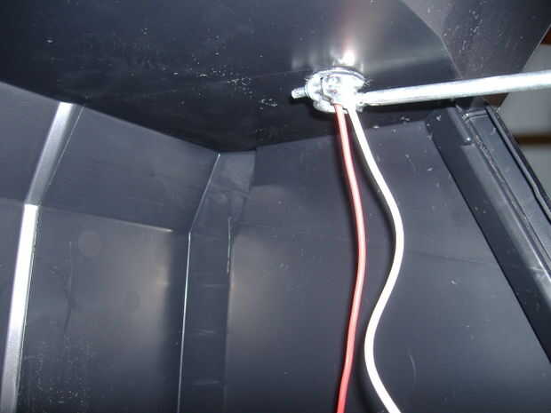 Corrí los cables de la batería hacia arriba aunque el agujero en la parte inferior de la caja de herramienta y soldar todo junto. Para evitar cortocircuitar puse tubo del encogimiento del calor en todas las conexiones. Luego apretó los accesorios de compresión para impedir que los cables de. Ya habían realizadas todas las conexiones en el cuadro de utilidad, atornillar la tapa.