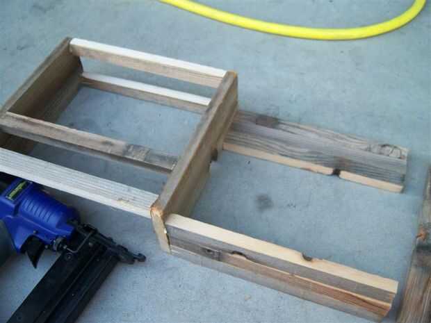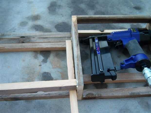 A continuación poner la pieza trasera en, otra vez use pegamento luego su pistola de clavos, no a ti mismo en las juntas.