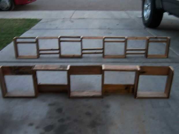 Ahora tienes una estantería completa. Tuve bastantes piezas extras sobrantes para hacer el estante de estilo original así. Aún tengo material izquierdo para hacer otra plataforma o algo más. Pueden ver ambos estantes y comparar el nuevo con el original en la siguiente imagen.