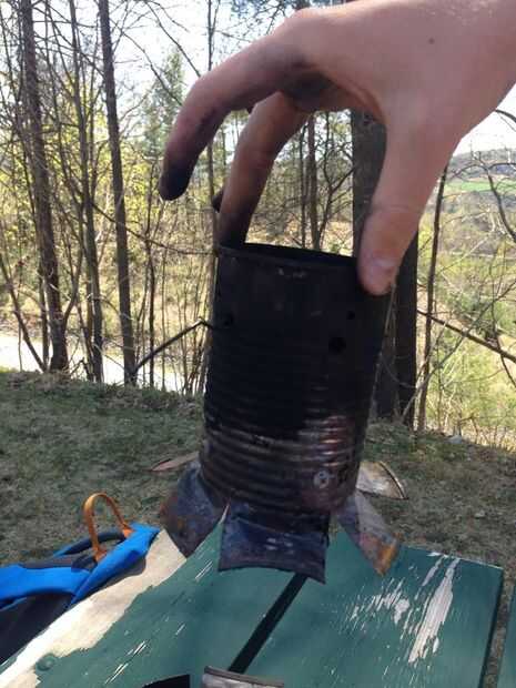 Esto puede mantendrá todo el combustible y la nº 10 es allí para soportar el peso de una olla de camping y el suspenso esta puede para aumentar considerablemente el flujo de aire. Una vez más, quitar el fondo de la lata. Corte ranuras largas pulgadas todo el camino alrededor de la parte inferior de la lata. Flay la parte inferior. A continuación, perfore los 4 tornillos de aproximadamente media pulgada por encima de las ranuras. Perfore los iguales distancias apartes. Tome la malla y corte en un círculo que se ajuste bien firmemente en el poder. Empuje hacia abajo y sobre los tornillos. Si necesita más ayuda, trate de doblar en la malla, o más tornillos. Esta malla es que descanse en la madera. Finalmente, perfore 4 orificios equi-distantes aproximadamente una pulgada desde la parte superior de la lata. Desde aquí, se pueden perforar los orificios más para aumentar el flujo de aire como lo hicimos, pero no es necesario.