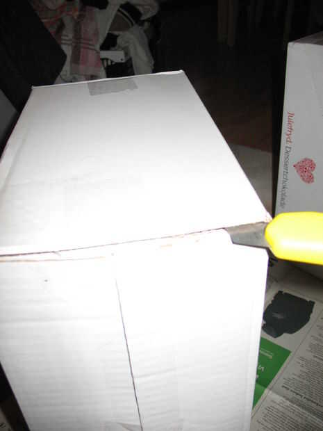 Inicio cerrando las tapas y pegarles, luego recortas a lo largo de la parte superior con el cuchillo para que pueda obtener una nueva tapa. La tapa debe ser totalmente desmontable y separado de la caja de