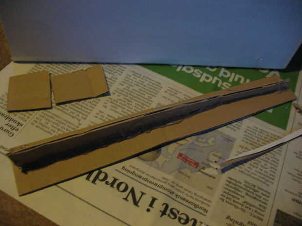 una vez que el pegamento se haya endurecido, cortar una tercera pieza de cartulina y pegamento en un ángulo de 90 grados, debe ser un poco más corto que el ancho de la caja.