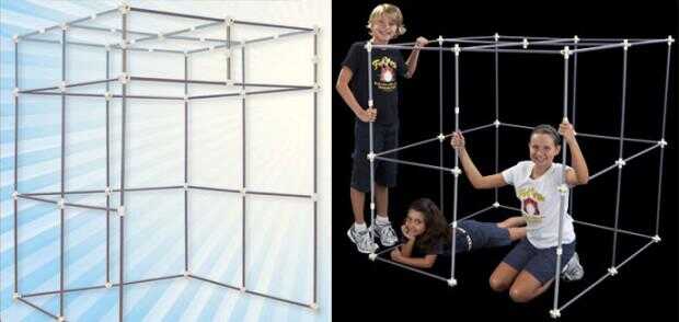 Es la respuesta obvia y puede construir algunos grandes estructuras, pero me siento como estos equipos lejos de la verdadera naturaleza del edificio de la fortaleza. Tienes que ser imaginativo y tomar ventaja de su entorno. Simplemente haciendo una caja dentro de su habitación no corta para mí. Estoy buscando algo diferente. Estoy buscando algo que me ayudará a modificar y manipular el estándar fuerte de materiales de construcción. ¿Qué puedo añadir a la pila de sábanas, almohadas, mantas, cartón, colchones, perillas de cama y palos de escoba?