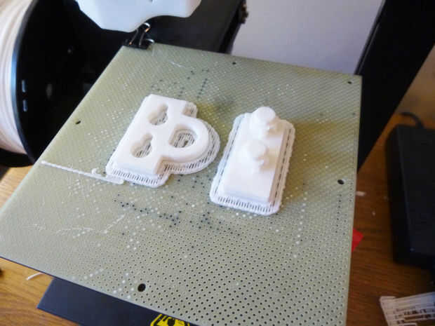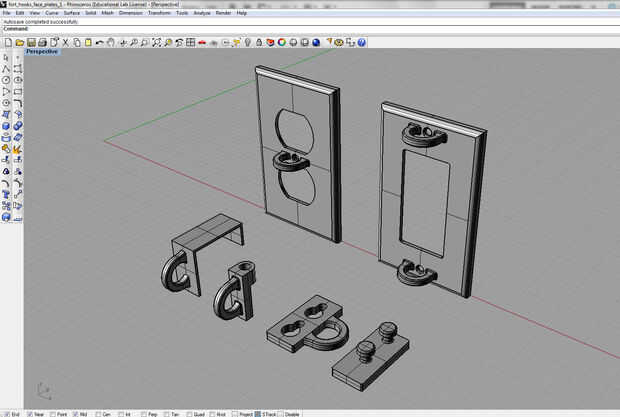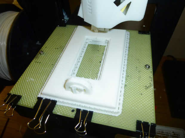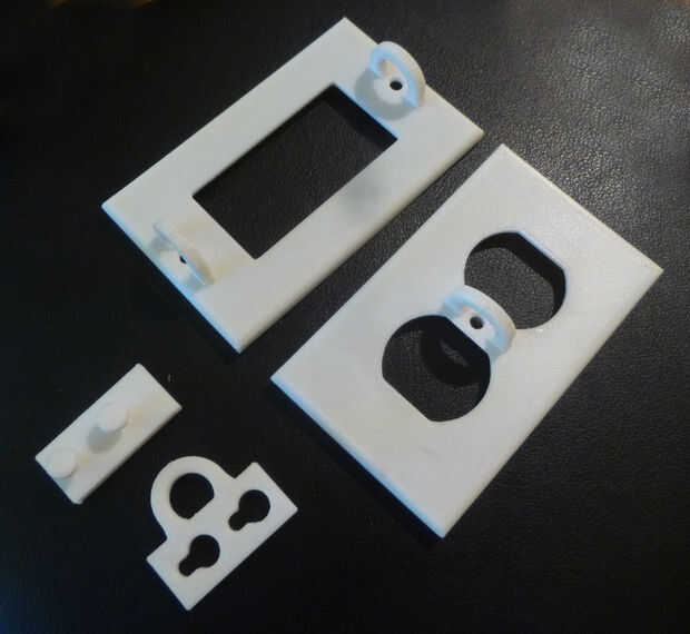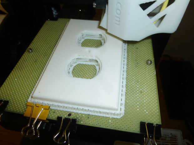 La impresión de estas piezas fue relativamente sencillo. Utiliza la impresora 3d que instructables dio a nuestra escuela a través del programa de patrocinio. Las cubiertas de salida y el interruptor tomaron cerca de 2 horas cada una para imprimir, mientras que las suspensiones de puerta y bisagra tomaron alrededor de 15 minutos.