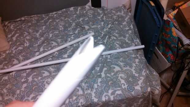 Después de tener sus palos enrollados, utilice las tijeras para cortar ambos extremos de cada una de plana. Luego se corta una V en forma de muesca en un extremo de cualquier pega que dará soporte a otros. La colocación es totalmente hasta usted, pero asegurar las esquinas con cinta adhesiva para mantener los palos de ser deshecha.