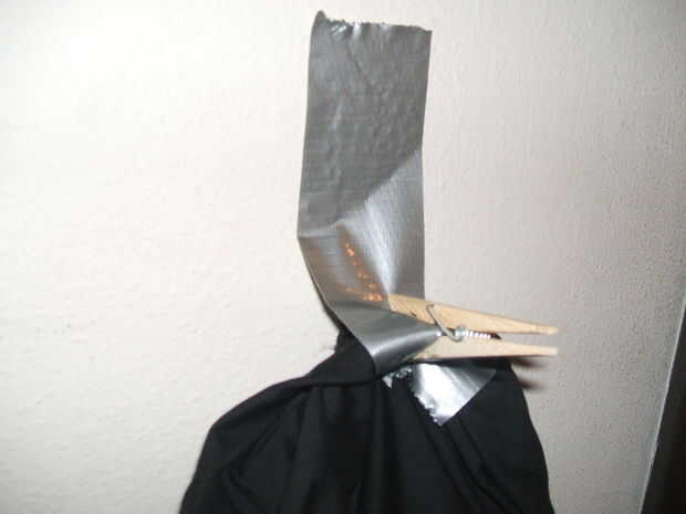 Punta: Una explicación sobre cómo utilizar cinta adhesiva para conductos y pinzas para la ropa con eficacia para unir una hoja a una pared se explica en el paso 3. También hay una imagen que se muestra por debajo del cual puede ser útil.