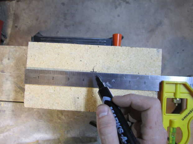 Marque aproximadamente donde la broca entraría dentro la curva de la cavidad de la fragua. Luego transfiere las marcas en la parte superior con un cuadrado y comenzó la perforación.