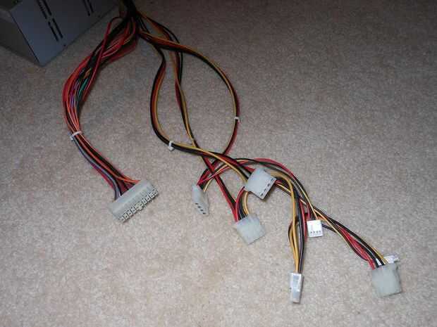 Nota: Algunas fuentes de alimentación con otros cables de sentido de tensión demasiado... Estos son generalmente más delgados que los cables principales y son el mismo color (pero más delgados) o marrón o rosado. Estos deben permanecer conectados como son o la fuente de alimentación no se enciende. Hacer una nota de cómo todos los cables están conectados a los pines del conector antes de la corte de los conectores y no cambiar este cableado.