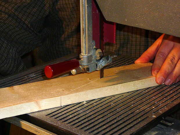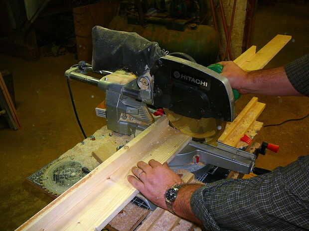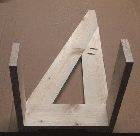 Para este paso utilizamos un Chopsaw para cortar los tableros, una sierra de cinta para cortar con seguridad el cono largo de la Junta de ángulo, y un agujero de ocultación de Kreg la plantilla para algunas de las juntas.