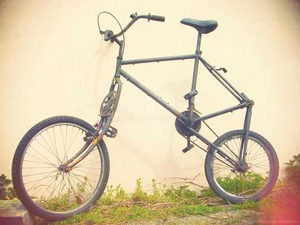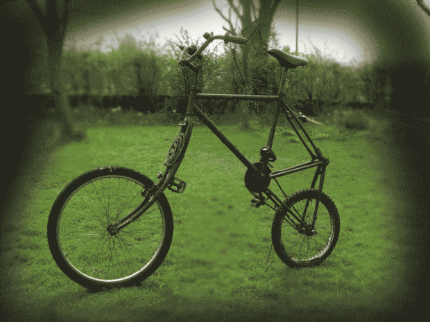Utilicé dos marcos de la bici de montaña y extra sistemas de horquillas (tres en total) y una rueda trasera bmx.