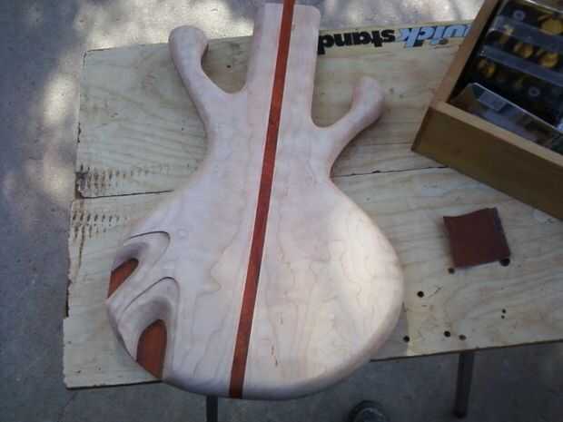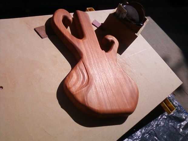 Empezar a lijar todo el cuerpo (menos la cavidad, el cuello y la recolección de recortes) a partir de papel de lija de grano 120. Busque defectos, rayones y bordes afilados antes de pasar a la siguiente arena. Repita el proceso lijado usando los granos 220 y 400.