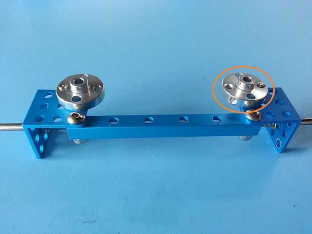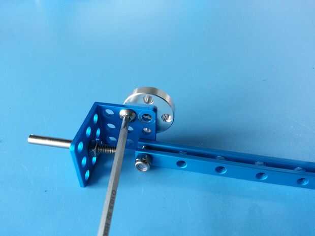 Bloquear el casquillo tornillo M4x8 en el agujero roscado del turnplate como se muestra en la figura (Notas: Asegúrese que los orificios laterales del soporte y del agujero central del turnplate concéntricas.) Vuelva a colocar el conector del eje marcado en la segunda foto con anillo de plástico y el eje D.