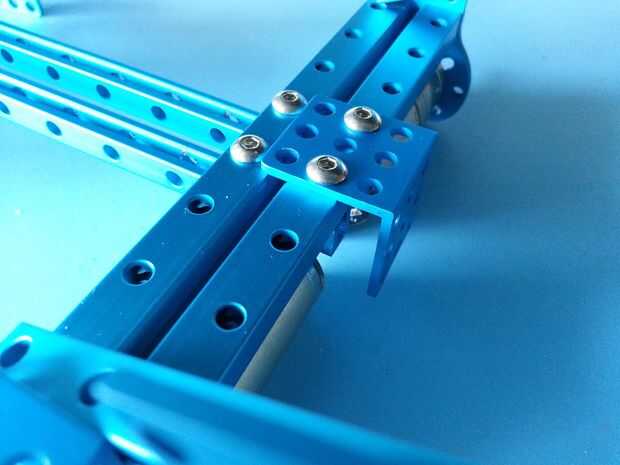 paso sobre el marco anterior montado en el paso 7 con el tornillo de tapa cilíndrica M4x14 como se muestra en la figura (Notas: las caras del extremo de la pista y el marco principal se instalarán en el mismo plano.