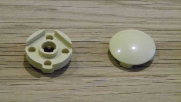 Las otras 2 piezas LEGO que necesitará son utilizadas para el pan. Estos son 2 piezas diferentes pero ambas circulares. Uno tiene la tapa redonda que servirá como el bollo superior y la otra es la parte inferior.