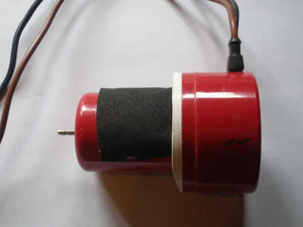 Quitar la parte inferior azul (klicks apagado). Quite la hélice pequeña por lo que el eje de metal es gratis.