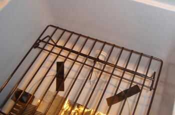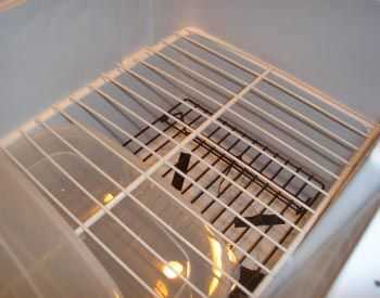 Después de haber terminado el montaje de la parrilla inferior, estás listo para instalar la rejilla superior. Utilizar los estantes de alambre armario blanco que puedes comprar en cualquier Home Depot y Lowes para la rejilla superior. Medir y cortar para que quepa exactamente en la plataforma interna que ya está incorporada en las paredes del refrigerador. Si hiciste todo hasta este punto ya que tengo, que se ajusta perfectamente. Si se ha modificado nada hasta este punto se pueden utilizar tornillos para montar el tormento asegurándose de dejar un mínimo de 5,5 pulgadas entre las parrillas superiores e inferiores (debe asegurarse de que puede caberle cajas de huevo!) La segunda imagen muestra la configuración con dos racks instalados.