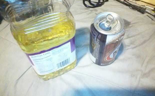 Relleno uno del pop latas a mitad de camino completo con el aceite.