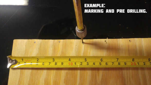 Paso 7 – con su 1/16" taladrar previamente los bits, el taladro a la mitad de la madera contrachapada a cada marca que hagas en pieza C.