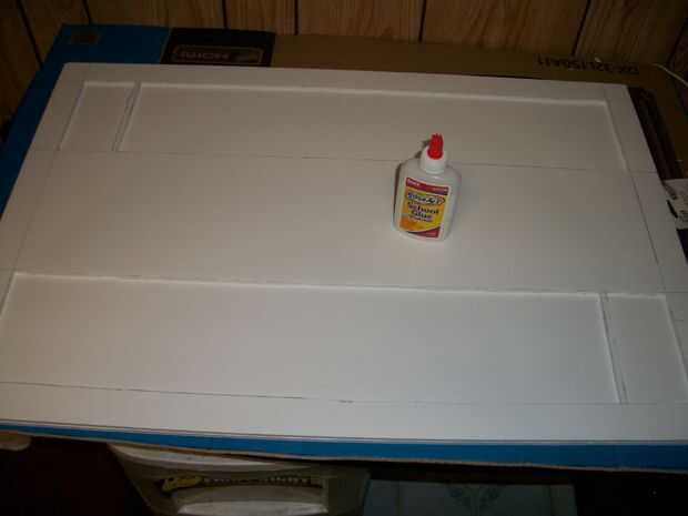 A continuación, después de que cortamos de un lado, hacer lo mismo para el otro. Luego con su cola, realizar un incluso difunda en cortar el tablero de la espuma y haz un poquito de pegamento en el divisor. Extienda uniformemente en el segundo tablero, resultado final debería verse algo así.