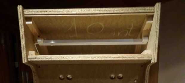 Para fijar la placa delante de la pantalla (bisel) se puede utilizar doble cinta. Pero para la marquesina, no hay ninguna superficie detrás de la placa porque debe dejar que el paso de luz. Usted puede cavar una ranura para insertar la placa. En mi caso, no he planeado cavar una ranura para poner un pequeño anillo detrás de la placa que vemos en la fotografía. Luego pegan la placa con el pegamento.