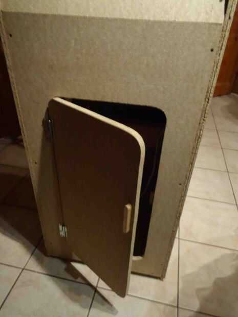 Cómo hacerlo: Antes de cortar, perforar un pequeño agujero para insertar la hoja de sierra. Cortar una puerta con el rompecabezas y poner una bisagra. Para mantener la puerta cerrada, usted puede poner un imán dentro. Tenga cuidado al cortar porque necesita ambos lados de la Junta (la puerta y el marco de la puerta). Así que cuidado con los dos lados.