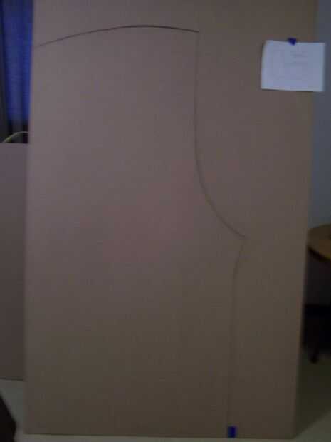 Esbozar el diseño de un lado de la máquina de arcade en una de las láminas de madera contrachapada. Seguir su plan (o esbozo) cuidadosamente para asegurarse de que cuando se corte, cada pieza de la máquina se ajusta bien con los demás. A continuación verás lo comencé con: un plano y un dibujo sobre la madera.