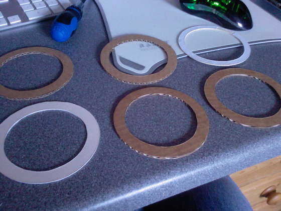 En primer lugar, me puse sobre cortar algún anillo en forma de piezas de la tarjeta, como se puede ver en las fotos abajo.