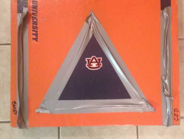 Nota: Asegúrese de que la cinta abraza la línea entre el color de la secundaria del triángulo y la inacabada madera imprimada