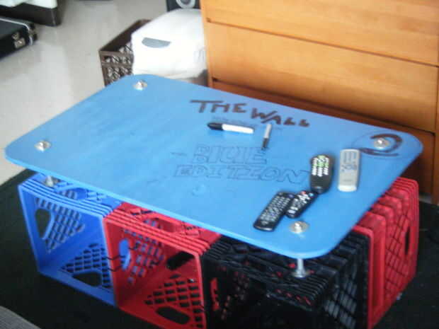 Hice esta mesa porque los perdedores horribles vida de residencia en mi universidad me dieron una habitación en la que podrían caber una sala de estar. Así que necesitaba una mesa de café frente a mi cama y detrás de mi TV.