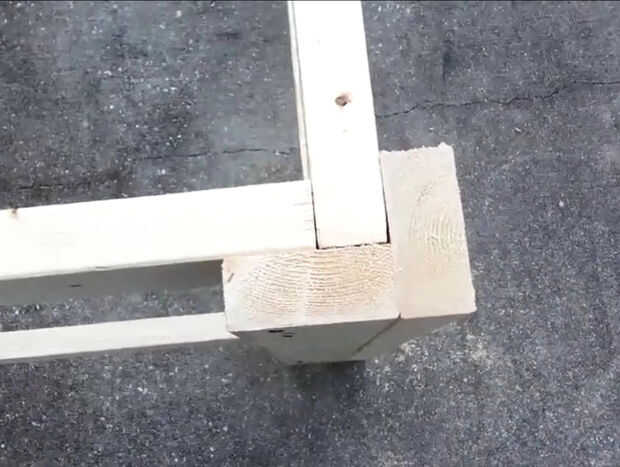 Coloque las piernas a los dos bastidores rectangulares como se muestra en las fotos. Un marco debe ser jodido de 8 pulgadas desde la parte inferior. El otro debe atornillarse a ras con la parte superior de las piernas.