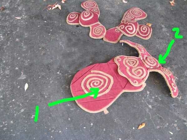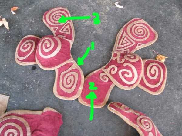 Repita con el viejo protector de pecho (1) y el partidario de espalda de forma extraña de algunos viejos pantalones de hockey (2).