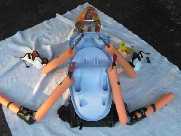 El cuerpo principal tiene 4 brazos que necesitamos para montar en algo, así que después de todo algo liviano, encontré un viejo baño bebé plástico que fue perfecto y emperna boca abajo sobre el armazón de la mochila y poner los brazos en las superficies elevadas de la bañera.