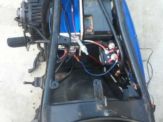 Esto fue facilitado por los vendedores y los que construyeron EV motocicletas delante de mí. He comprado un controlador Alltrax y vino con un fusible. En el sitio web de Alltrax he encontrado un esquema para el mando de acelerador twist grip Magura 0-5 K ohm. El contactor tenía la opción de compra con el diodo y el resistor, así que lo hice. Yo también sabía que necesitaba un diodo de protección reversa de la esquemática por lo que ordenó a todas las piezas que necesitaba a la vez. Básicamente la documentación del controlador le dará los planes para conectar tu moto EV. Dependiendo de la tensión, el alambre y cable terminales debe ser lo suficientemente gruesa como para no derretir. Encontré esta información en muchos sitios web. No quiero hacer la luz de esta parte de la construcción ya que es peligroso y puede resultar caro si usted alambre mal. Utilice la ayuda de su sitio web de controladores y el comprar los suministros eléctricos. No quiero sonar fácil, es muy útil si usted puede leer el esquema o tiene un amigo que puede. Tuve algunas herramientas básicas y un multímetro. Me siguió todas mis conexiones y utiliza del encogimiento del calor para que se vea bonito. Terminó siendo la parte más frustrante y gratificante de la construcción como han trabajado en motocicleta, pero nunca han construido una motocicleta EV.