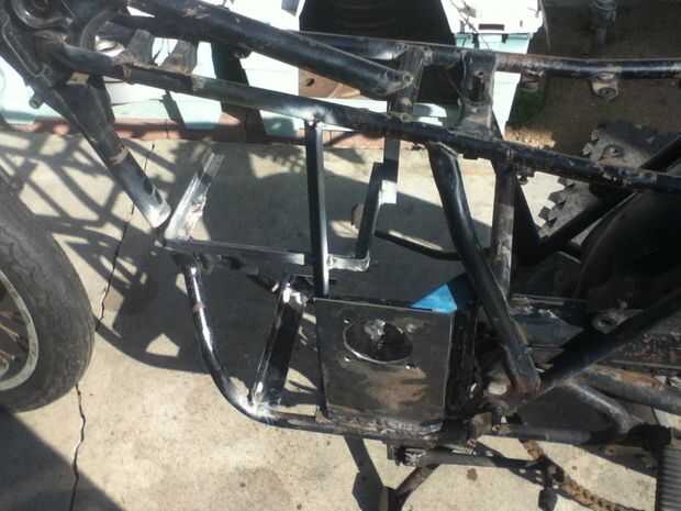 Si van a utilizar el marco común y que no se corte hasta fit caben las pilas usted querrá asegurarse de que las baterías en su lista de piezas. La razón que usted debe burlarse encima de la moto en este momento es para asegurarse de que todo se ajuste. He visto a gente usa cartón para hacer esto o puede dibujar todas las partes y su estructura en papel para ver si todo se ajusta. Este fue mi primer error que cometí. Quería construir una motocicleta de 48 volt EV y no decido en qué pilas iba a utilizar. Ordeno todas mis piezas de 48 voltios y decidió que iba a utilizar baterías de ciclo profundo de Walmart. El tamaño físico más pequeño son grandes. Me di cuenta que estaba en problemas en este punto. Pude haber comprado una batería diferente que habría ajuste 4 pero habría me costo unos 700 dólares más de lo planeado. Compré un par de baterías para robar imitan para arriba y algunos soldada de la placa y a ver cómo se encajan y en ese momento decidí sólo tiene que utilizar dos baterías, dos baterías caben muy bien en esta moto. Tuve que devolver mi contactor como fue hecho para un sistema de 48 voltios. Mi controlador también se creó para que tuviera un bajo ajuste de voltaje ajustada a 30 v para proteger la batería. A gracias a Steve de Alltrax.com y Carl a EVDrives.com por ayudarme a problemas el bajo ajuste de voltaje. Y gracias a Carl para hacer la vuelta relativamente gratis. Muchas otras estructuras de motocicleta EV tiene algunas sugerencias de gran o construir una bicicleta que alguien ya lo ha hecho.