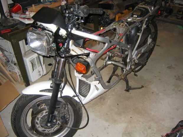 Después de llegar su montaje motor y compartimento todo soldado con autógena para arriba, tómese su tiempo para limpiar el bastidor de tu moto. He quitado cualquier manchas de óxido y astillas de pintura que pude encontrar. Entonces utilicé algunos pintura de aerosol metálica gris y negro. Esto hace una gran diferencia y cuesta muy poco.