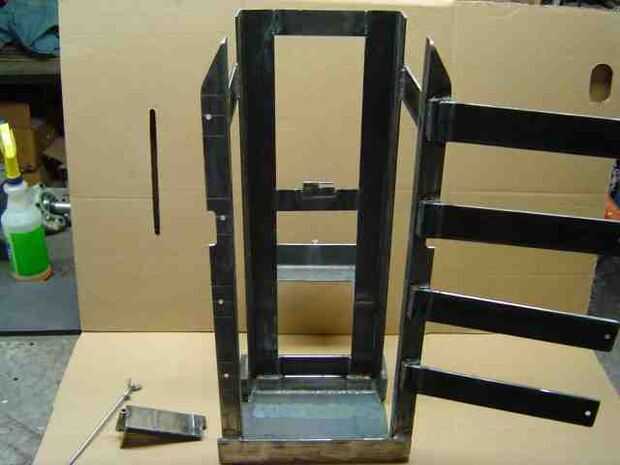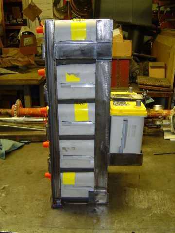 A continuación él había fabricado el rack de batería y dio cada batería de un cierre de brazo de swing para dar un ajuste apretado, sin embargo todavía me permite salir fácilmente. Espaciadores de acolchado de espuma de media pulgada son entre cada batería a cojín de la pila, pero créeme, no van en cualquier lugar. Lo último que