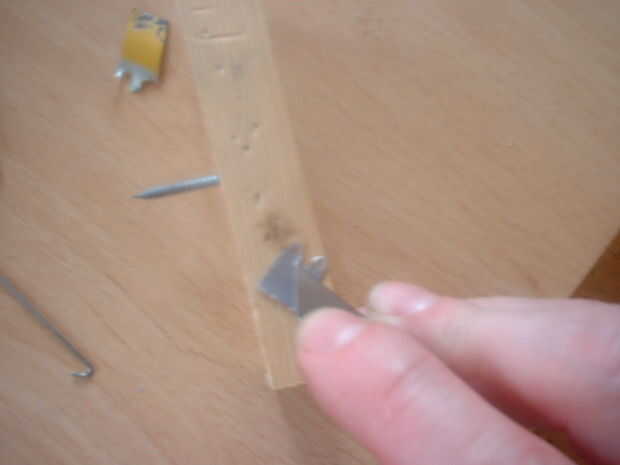 Si examinas Lego eslabones, verá que bloqueo con pernos espaciados aparte 6.5mm. Hay suficiente espacio para conseguir algo muy fino entre las uniones que se fijarán en los pasadores de la misma: