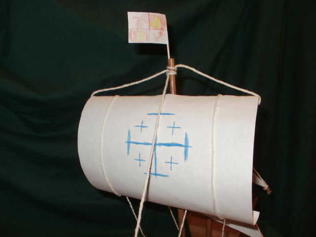 ¿Qué tamaño deben ser tus velas? Es realmente suya. Estábamos tratando a un barco real del modelo, yo realmente mide las dimensiones de una foto de ella y entonces, todo el ancho de la yarda, utilizando una proporción para determinar a qué altura debo hacerlo similar. Debería haber sido nuestro 5 "x 7" pero realmente extendió a 6" para poder lo arco y enrollar la parte inferior y pégalo al mástil para sostenerla en lugar.