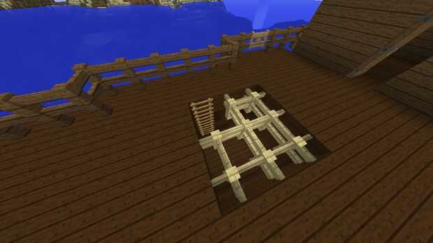 Este es un paso fácil. Cuatro cuadras de la entrada a la cabina, construir una valla de 3 x 3 cosita (lo que se llaman??). Luego, quitar uno de los bloques y colocar la escalera hasta la parte inferior del casco.