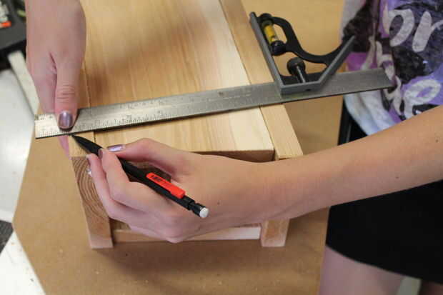 Ahora te Fije la parte inferior de la parte delantera a la derecha! Una vez más, alinee la herramienta cuadrada con un tornillo en el lado derecho/trasero, haga una marca como se muestra en las fotos, un taladro y poner un tornillo. No te preocupes, estamos casi listos!