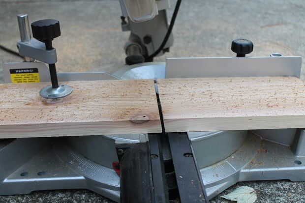 Por último pero no menos importante, tienes que hacer un corte oblicuo. Esto es para el frente y piezas de la espalda, y una vez más, es para que el techo puede caber en correctamente. Ajuste la sierra en un bisel de 10 grados, asegúrese de que usted está cortando desde la parte superior izquierda a la parte inferior derecha y confirmar que la pieza más corta está a la derecha. Luego, asegúrese de que colocar el bisel hacia 0 grados!